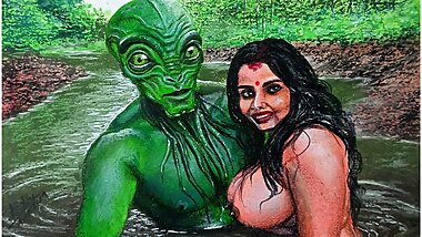 "Erotic Art Or Drawing Of Sexy Indian Desi Bhabhi in Love With an Extraterrestrial Alien"