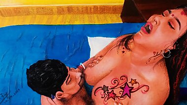 "Erotic art or drawing of sexy Indian woman fucking her husband"
