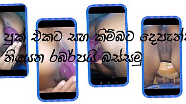 "Sri Lankan Aunty hit her ass hole and pussy using double Side Dildo home made closup video"