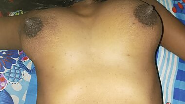 "Desi hot bhabhi fingers her pussy and presses her big boobs hard "
