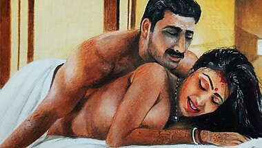 "Erotic Art Or Drawing Of a Sexy Bengali Indian Woman having "First Night" Sex with husband"