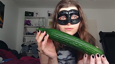 "18yo TEEN FUCKS HUGE CUCUMBER!!! Small Tits, Shy Teeny, Perfect body Amateur Teen"