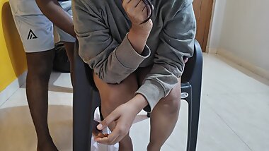 "Hot housewife fucking missionary doggy style with husband friend "