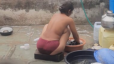 "Stepsister's bath in desi bathroom"