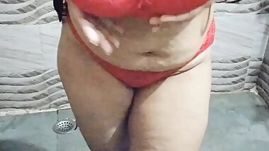"Summer time came and hot roohi filling hot and strip out her bra Big boobs in red bra"