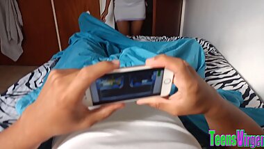 "My stepsister is horny and I go to her bedroom with the excuse that she helps me and I end up fucking her hard in her tight puss"